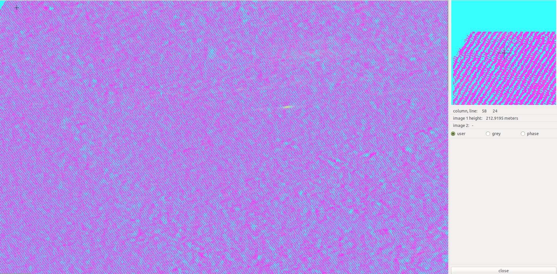 Having the new look-up table, 20180503.slc.lt, generated, I ran geocode, and tried to view the new HGT (DEM in SLC geometry, screenshot attached) but there seems to have diagonal holes in the hgt, maybe something went wrong with the interpolation.